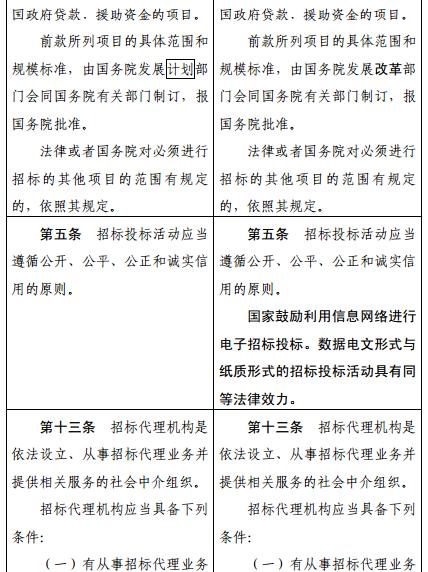 《中華人民共和國(guó)招標(biāo)投標(biāo)法》修改前后對(duì)照表