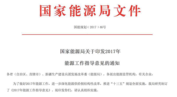 為了更好的做好完成2017年能源工作,近日,國家能源局研究制訂了《2017年能源工作指導(dǎo)意見》(簡稱意見)。