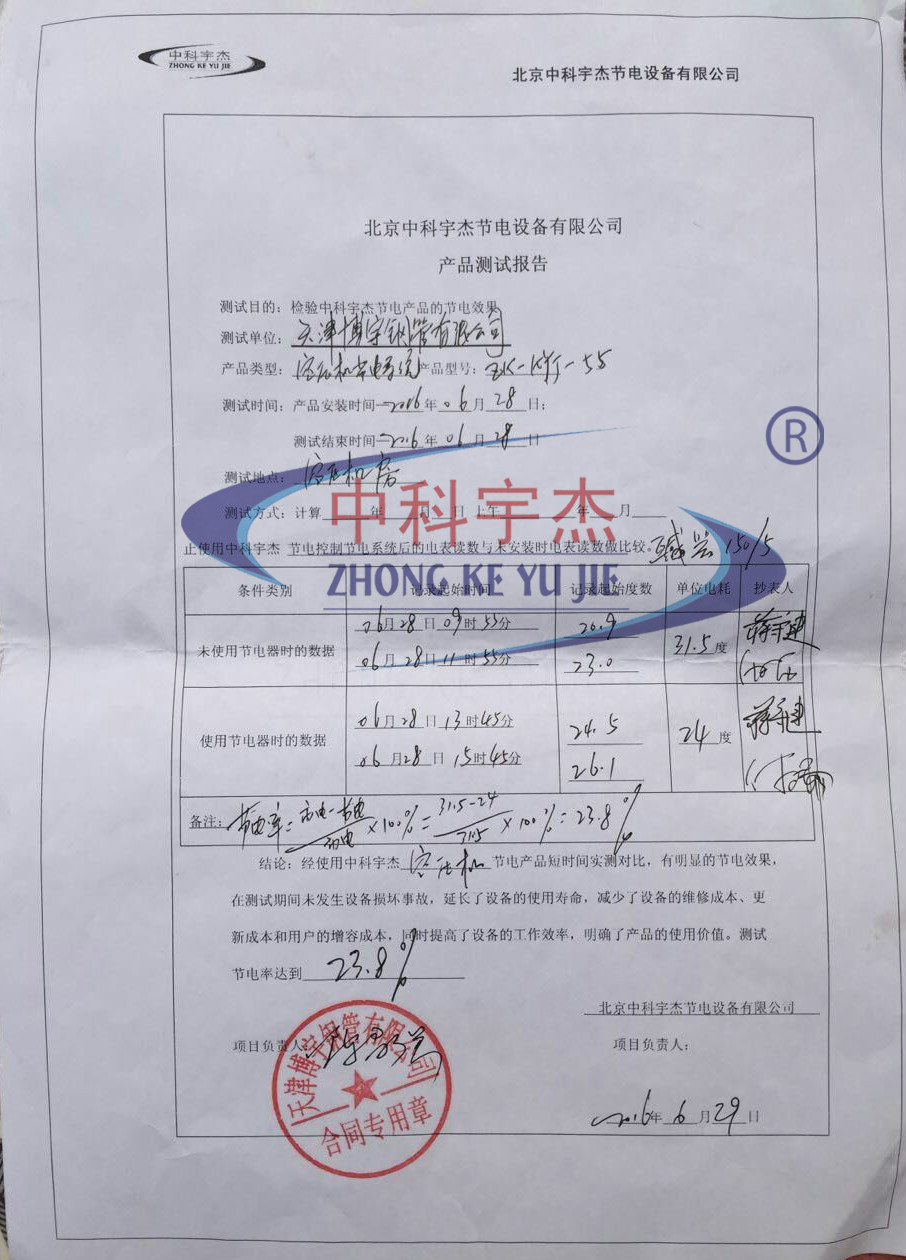 根據(jù)空壓機和水泵的應用情況進行技術難點攻克,這次的節(jié)能改造得到了很好的節(jié)能效果。設備安裝后,經過嚴格測試,對比安裝前的能耗來看,安裝后的空壓機能耗降低了23.8%,水泵能耗降低了27.2%。按保質十五年計算,此次節(jié)能改造能為天津博宇鋼管有限公司帶來二百二十萬人民幣以上直接經濟效益。