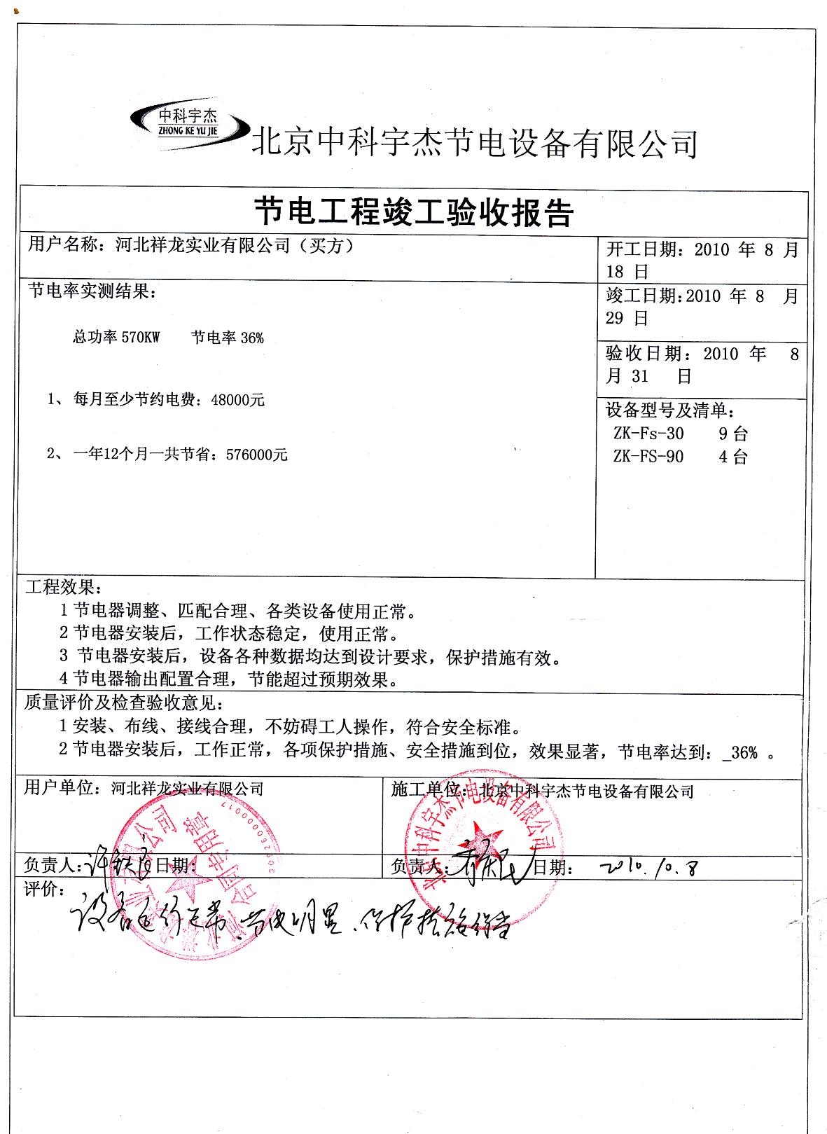 安裝調(diào)試驗收,節(jié)能效率達(dá)到36%,投資回報期一年半,按質(zhì)保十年計算,此項節(jié)能工程能為祥龍實業(yè)帶來570萬以上人民幣的直接效益。